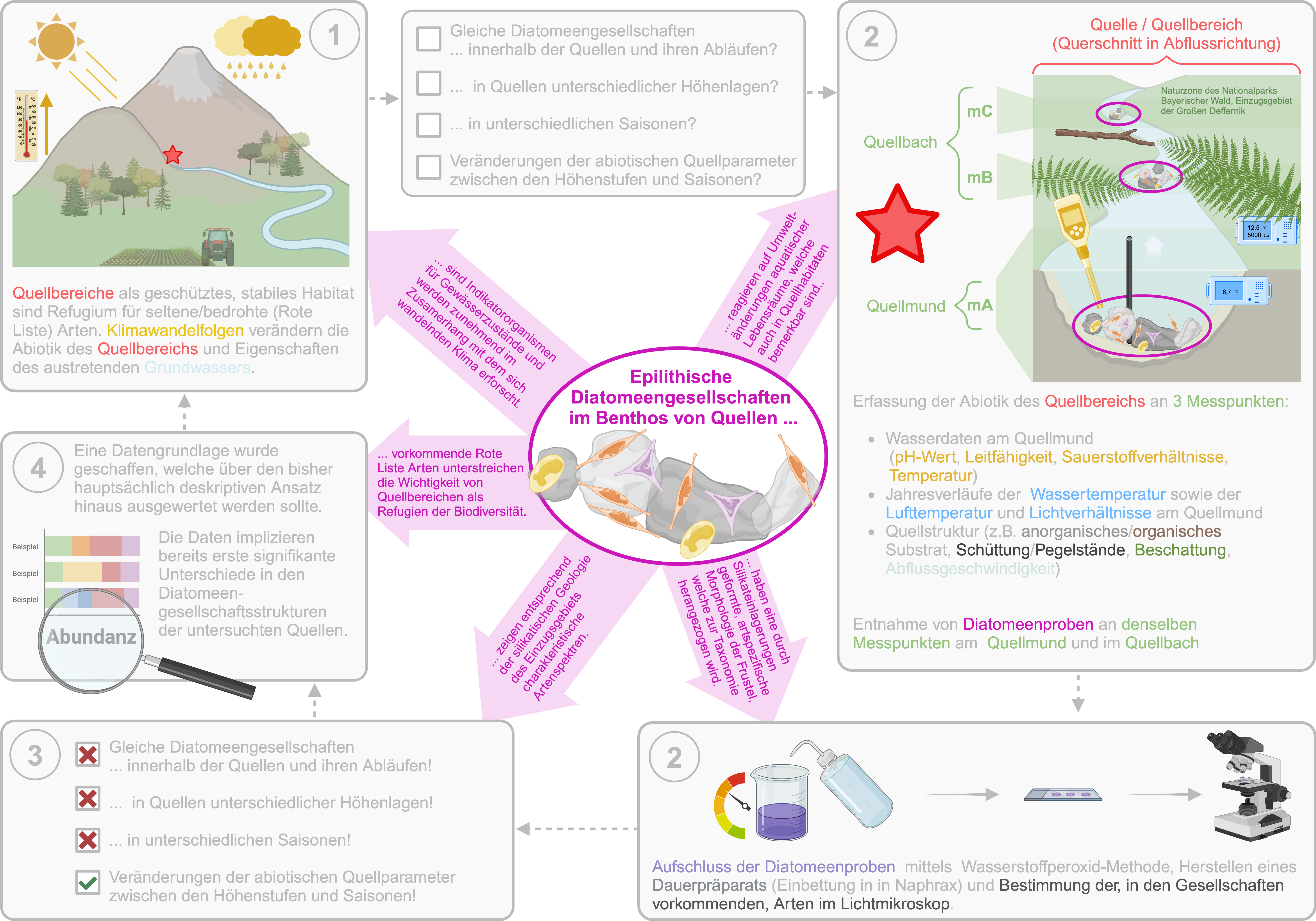 ▶︎ Grafische Zusammenfassung der Masterarbeit “Diatomeen in Quellen” (2024).